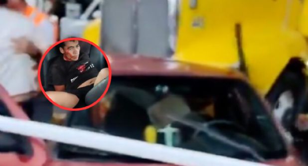 En el video compartido a través de la plataforma de X, antes conocida como Twitter, se puede ver como uno de los testigos graba al sujeto detenido dentro de la patrulla de los oficiales, notablemente dañado por el accidente, alienado de la realidad.
