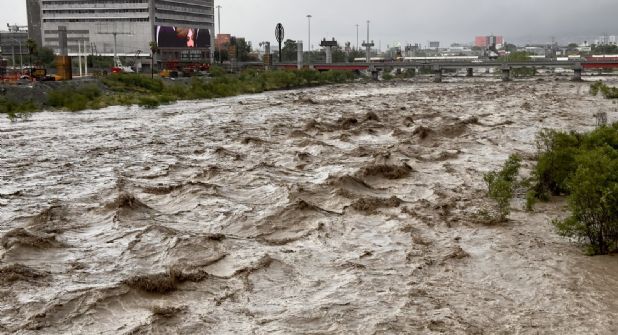 Las fuertes lluvias causadas por la Tormenta Tropical Alberto han causado grandes estragos en Monterrey y su zona metropolitana; aunque sus ríos, los cuales lucían sin una gota de agua apenas ayer, hoy están llenos. Sin embargo, una de sus principales avenidas, Constitución, ya sufrió el desgajamiento de un tramo del carril exprés.