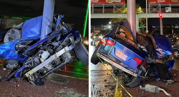 Jorge M.T., de 20 años de edad, manejaba a exceso de velocidad su Honda Civic en la avenida Rafael Cuervo, en el Puerto de Veracruz, se pasó el semáforo en rojo y se estrelló con un poste.