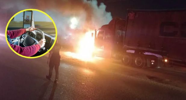 La madrugada del martes, el operador de un tráiler se salvó de milagro, luego de que el motor de la pesada unidad se incendiara, mientras estaba en la orilla de la carretera. El conductor se acostó a dormir cuando se presentó el siniestro, pero por fortuna pasaron unos policías por el lugar e intervinieron para salvar al chofer.