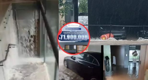 En los videos compartidos se puede ver como dos autos y la vivienda se inunda por las lluvias ocasionadas por la tormenta tropical Alberto y ante ello, el ITESM, decidió posponer el 216 Sorteo Tec, mismo en el que se conocería conocer el ganador de la casa valuada en más de 70 millones de pesos.