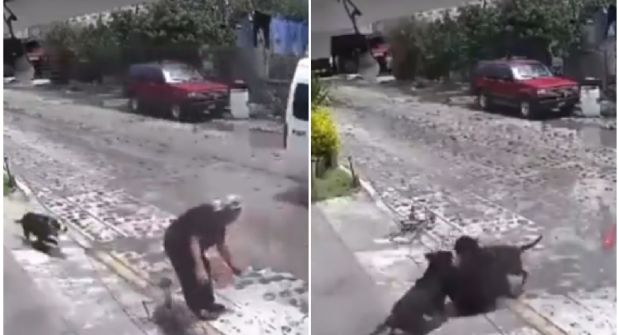En el video se alcanza a notar cómo uno de los caninos, con la fuerza de su hocico, hace girar a la ‘abuelita’ en el suelo, quien con todas sus fuerzas trata de repeler el ataque. No fue hasta que una vecina sale a la calle cuando la jauría se disuelve y dejan en paz a su víctima; la segunda mujer salió con una escoba como su herramienta de defensa.