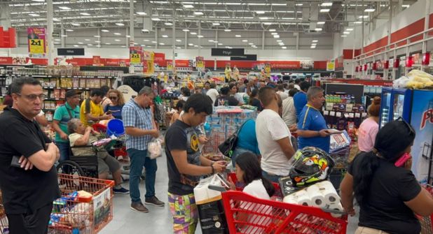 En un recorrido por el Soriana Mega Kabah y otras tiendas, se pudo observar a ciudadanos adquiriendo productos esenciales como alimentos no perecederos y agua purificada, dejando algunos estantes vacíos.