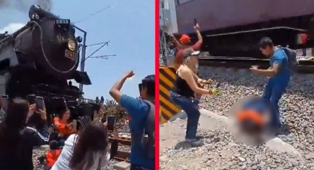 En las imágenes se muestra a la fémina, junto a grupo de gente que esperaba el paso del tren "La Emperatriz" en Nopala de Villagrán, Hidalgo. Justo a llegar, muchos sacaron su celular para tomarse la foto del recuerdo, sin embargo, ella quería hacer algo más osado.