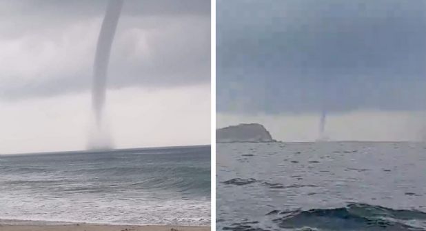 Una impresionante tromba marina se formó en el mar de Huatulco, Oaxaca, ayer sábado, sorprendiendo a turistas y habitantes que pudieron captar y compartir las imágenes en redes sociales.