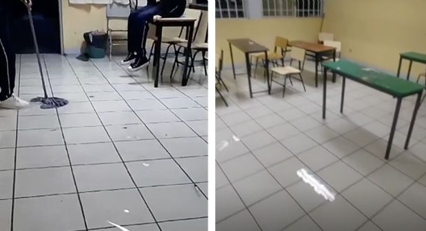 Según narró la mujer, los estudiantes, además de trapear, también fueron obligados a limpiar los baños sin ninguna medida higiénica adecuada.
