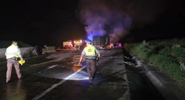 Esta mañana un trailero murió de forma trágica al chocar su unidad contra el muro de contención, falleciendo calcinado dentro de la cabina, mientras su compañero se salvó de milagro.