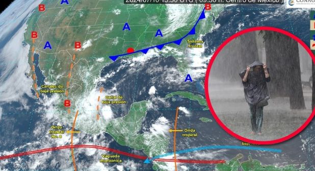 Este pronóstico también se verán reflejadas sobre el noroeste, norte, noreste y sureste de México, debido a varios canales de baja presión interactuando con inestabilidad en niveles altos de la atmósfera y la humedad del Océano Pacífico y Golfo de México.