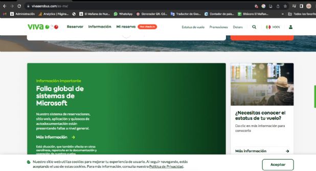 La aerolínea mexicana VivaAerobus ha experimentado significativos problemas operativos esta mañana debido a una falla informática global en los sistemas de Microsoft, lo que ha impedido la reserva de vuelos hasta el mediodía.