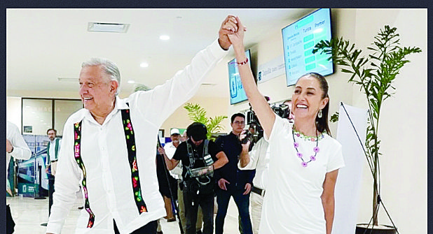 “Y, entre otras cosas, me siento contento porque está garantizado el relevo con una mujer llena de convicciones, de experiencia, una mujer honesta, por primera vez en la historia de nuestro país va a ser la presidenta de la República, Claudia Sheinbaum. Esto garantiza que no va a haber retroceso, sino que va a continuar el desarrollo de nuestro país con progreso y justicia”, precisó López Obrador