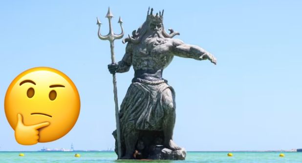 La estatua de Poseidón apareció en mayo de 2024, frente a la playa del Puerto Progreso, sin ninguna ceremonia de inauguración o parecido. Más adelante, se supo que el municipio, encabezado por Julián Zacarías Curi, había puesto la escultura como parte de un programa para atraer turismo, que incluía la inauguración de una cancha de basquetbol y un skatepark.