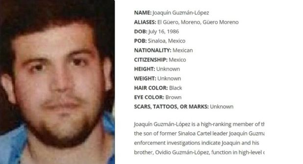 Funcionarios del Departamento de Estado de EE.UU. informaron este 25 de julio de 2024, a las 14:00 horas, fue detenido Joaquín Guzmán López, alias “El Güero Moreno”, de 36 años, hijo del famoso narcotraficante Joaquín "El Chapo" Guzmán. "El Güero Moreno" es miembro de "Los Chapitos", "Los Menores" y "Los Chiquillos", junto a sus hermanos Iván Archivaldo, Jesús Alfredo, y Ovidio Guzmán.