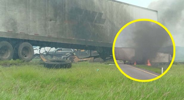 Uno de los tráileres tiene el logo en la caja de la compañía TNL, más no se sabe si el tracto camión pertenezca a la empresa mencionada, tampoco se tiene el dato de que fue lo que originó el accidente que se podía ver a varios kilómetros de distancia por el humo que se generó.