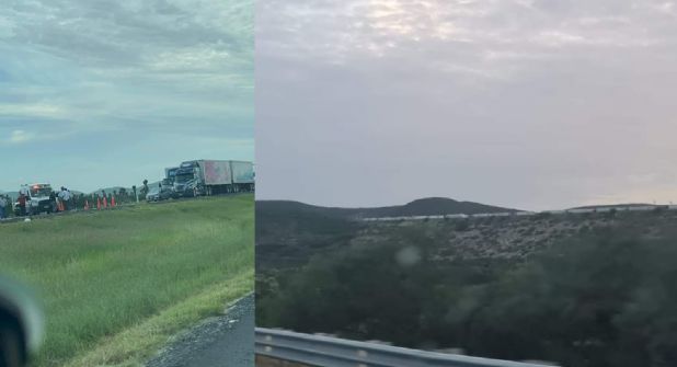 De acuerdo con el grupo Lo que pasa en la Autopista Monterrey-Laredo se registró un fuerte choque, en el que se aprecia, de acuerdo con imágenes o videos se observa que son varios tráileres los involucrados.
