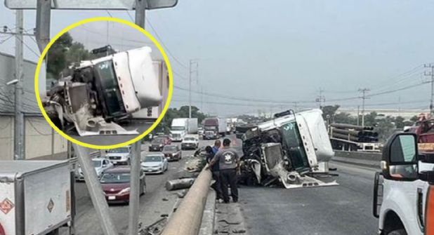 Ahora fue en el Libramiento Noroeste, en Escobedo, Nuevo León, donde se presentó una tragedia. Un trailero perdió la vida aplastado por la caja, luego de volcar. Habría impactado contra el brandal, que terminó siendo una especie de rampa, y luego la unidad se precipitó y se registró la desgracia, en un fin de semana muy accidentado en las carreteras de México.