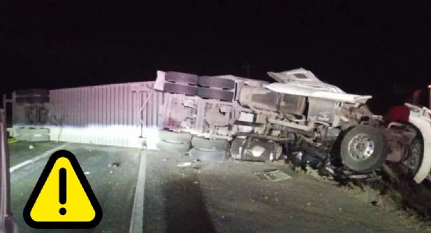 Los hechos ocurrieron al filo de las 4:00 de la mañana en el kilómetro 49 de la mencionada carretera, en García, Nuevo León. En este lugar, un tractocamión perdió el control y se volcó, quedando de lado y bloqueando ambas vialidades.