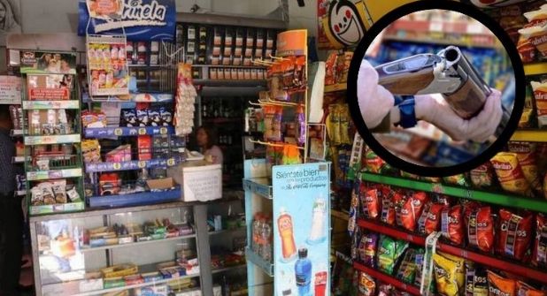 En redes se ha viralizado el video que muestra el momento el que dos personas encapuchadas entran a la tienda, y parece que le exigen dinero al encargado.