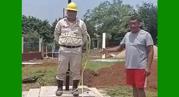 En un video que circula en redes sociales, se observa cómo dos habitantes mantienen inmovilizado al trabajador, quien, con su equipo completo, no tuvo más opción que escuchar las quejas de la comunidad.