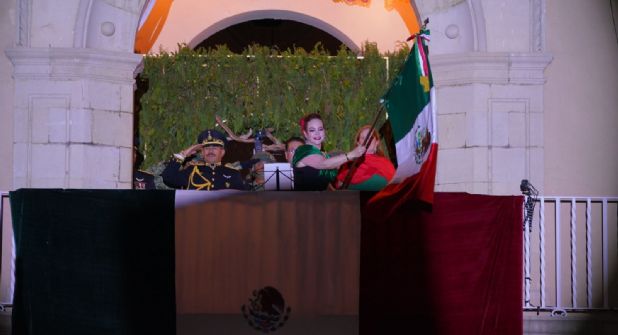 El momento más emotivo de la noche fue el tradicional ¡Viva México!, la presidenta municipal salió al balcón para encabezar la ceremonia. Acto seguido, la entonación del glorioso Himno Nacional y enseguida el espectáculo en el cielo con fuegos pirotécnicos.