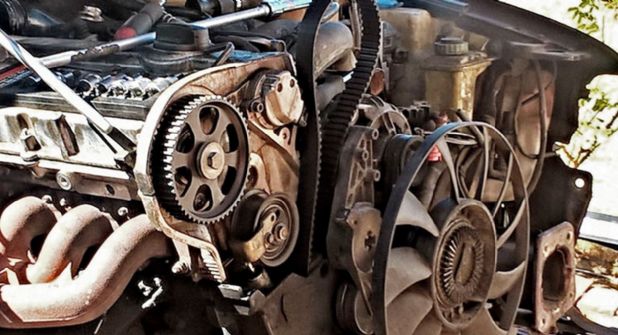 Una banda de tiempo está fabricada de goma con dientes, los cuales se ajustan a las ruedas dentadas del cigüeñal y los árboles de levas.