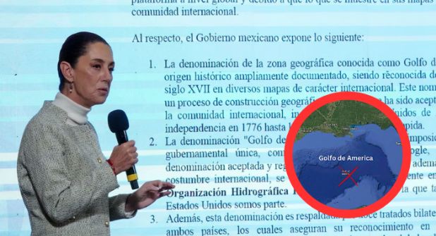“La denominación ‘Golfo de México’ no obedece a una imposición de una fuente gubernamental única, como erróneamente sugiere Google, sino que es un nombre aceptado y registrado históricamente”, expresó Sheinbaum.