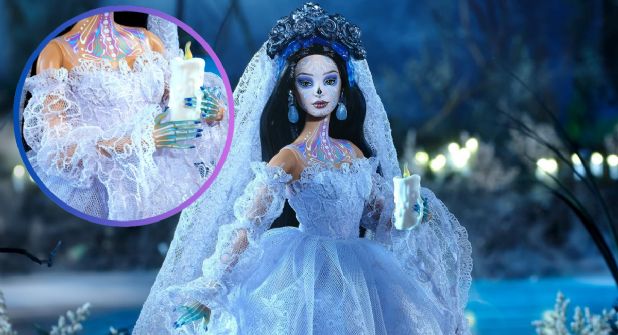 La pieza incluye además un certificado de autenticidad y una base para exhibir la muñeca, mientras para la marca Mattel, la muñeca es descrita como una figura “envuelta en encaje blanco, luciendo un vestido azul por debajo con mangas que cubren manos translúcidas con diseño esqueletal festivo”.