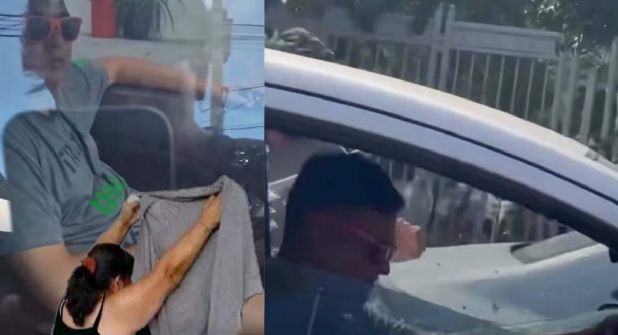Con piedras y palos, los jóvenes intentaron que el hombre se marchara del lugar, así como captar su número de placa. Es que no se sabe qué estaba haciendo el conductor sin pantalones estacionado afuera de la facultad. Los alumnos quejosos alertaron a otras personas e intentaron detener el vehículo.