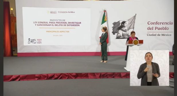 La consejera jurídica de la Presidencia, Ernestina Godoy Ramos, presentó la iniciativa de Ley General para Prevenir, Investigar y Sancionar el Delito de Extorsión, la cual será enviada al Congreso de la Unión para su análisis y aprobación.