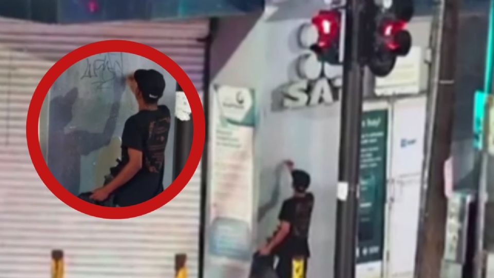Un joven fue sorprendido por oficiales de la Policía de Monterrey cuando se encontraba rayando la pared de las instalaciones del SAT, esto en el primer cuadro de la ciudad, razón por la que fue detenido.