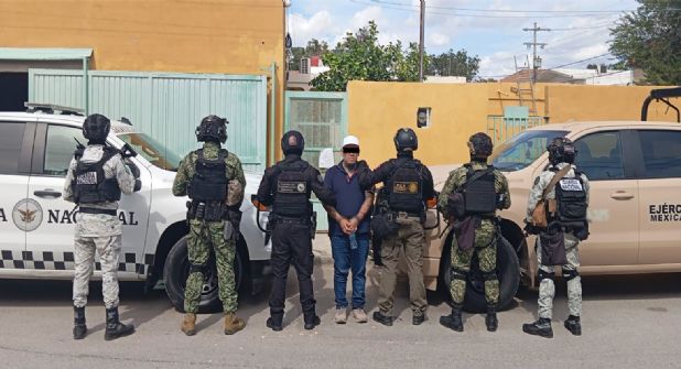 En Cd. Acuña, elementos de la Guardia Nacional (GN), Ejército Mexicano y Fiscalía General de la República (FGR), Secretaría de Marina (Semar) y Secretaría de Seguridad y Protección Ciudadana (SSPC) catearon tres inmuebles, detuvieron a dos personas, entre ellas un hombre encargado del trasiego de drogas, lavado de dinero y resguardo de armamento, les aseguraron un arma larga, un arma corta, cargadores, 55 cartuchos, 1.4 kilos de metanfetamina, diversas dosis de droga y un vehículo.