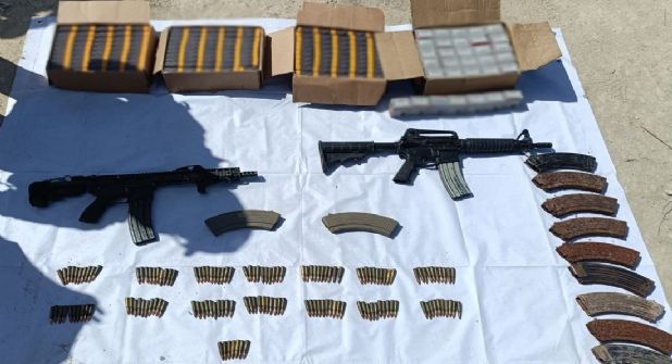 En Miguel Alemán, elementos del Ejército Mexicano y Policía Estatal localizaron un bulto y aseguraron dos armas largas, 13 cargadores, 4,286 cartuchos y dos artefactos explosivos improvisados.