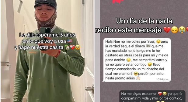 “No me odies, por favor, pero la verdad es que el dinero que me has mandado no lo tengo, me lo he gastado en otras cosas para mí y me da pena decirte, me compré mi carro y ya no quiero estar contigo. Llevo tiempo conociendo a un muchacho del cual me enamoré. Perdón por esto, hasta pronto, adiós”, supuestamente dijo la ahora exnovia.