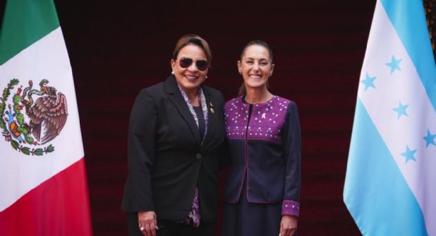 A la mandataria de la República de Honduras, la acompañaron el secretario de Relaciones Exteriores, Javier Efraín Bú Soto; el secretario particular de la presidenta, Héctor Manuel Zelaya Castro; y la embajadora de Honduras en México, Sonia Leticia Cruz Lozano.