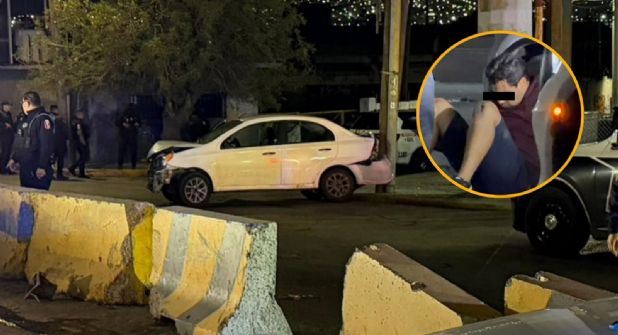 Los oficiales lograron localizar el automóvil en la incorporación del bulevar Gustavo Díaz Ordaz hacia la avenida Cuauhtémoc, donde el sospechoso perdió el control y terminó estrellándose contra un muro de contención, quedando acorralado.