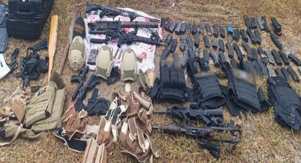 -En Apatzingán, elementos del Ejército Mexicano aseguraron un arma larga, un arma corta, un cargador, 10 cartuchos, tres cascos tácticos y un vehículo.