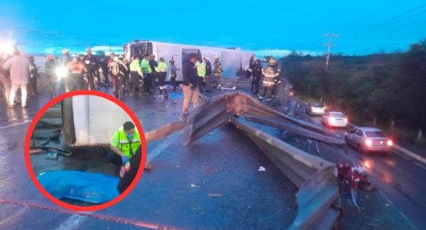 Un choque seguido de la volcadura de un camión urbano de la Ruta 611 Pesquería–Apodaca dejó un saldo de ocho personas fallecidas y al menos cuatro más lesionadas, la tarde de este domingo entre los límites de Apodaca y Pesquería, Nuevo León.