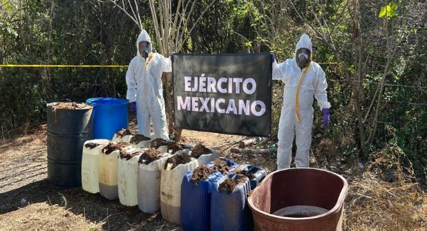 Entre los resultados más relevantes destaca que, en Sinaloa, elementos del Ejército Mexicano localizaron e inhabilitaron seis áreas de concentración de material diverso en distintos poblados del municipio de Cosalá, donde aseguraron 8 mil 400 litros de sustancias químicas, lo que representó una afectación económica estimada en 166 millones de pesos para la delincuencia organizada.