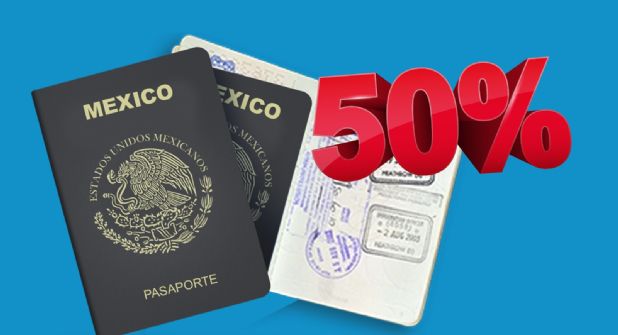 - Pasaporte mexicana de 10 años: 4 mil 120 pesos; 2 mil 60 pesos después de la rebaja.