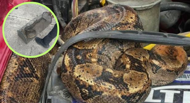 El hallazgo ocurrió recientemente en Tepic, cuando la conductora llegó a una base de Bomberos y Protección Ciudadana tras sentir “algo vivo” bajo el cofre de su vehículo. Al levantar el capó, los elementos especializados encontraron al reptil enrollado dentro del motor.