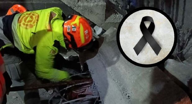 Fue una placa de concreto la que colapsó, dejando pedazos esparcidos en el piso y sobre el cuerpo de la víctima, que no pudo ser rescatada a pesar de los esfuerzos.