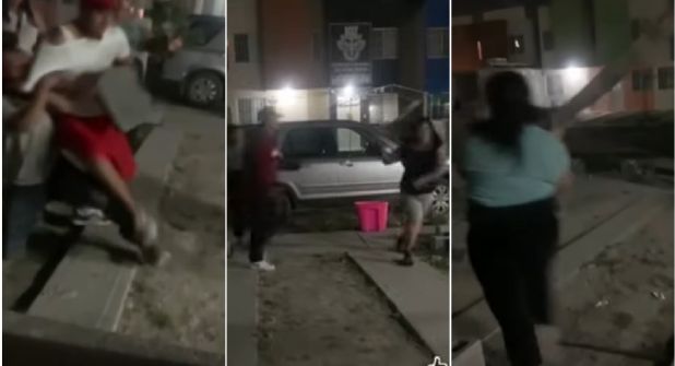Todo parece indicar que todos estaban en contra de la mujer de blusa negra, hasta que un señor adulto mayor trata de apaciguar la riña. Es en ese momento cuando otro sujeto, del ‘bando contrario, toma un block o ladrillo y se lo lanza hacia su espalda. Pese a llevar ‘ventaja’, el tipo de gorra roja intentó nuevamente atacar con el material de construcción en la mano, pero es intervenido antes de hacerlo.
