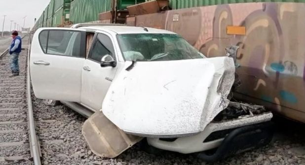 Según informes preliminares, el hombre manejaba una camioneta por el Libramiento Noreste cuando decidió ingresar a un camino de terracería que conduce al cruce ferroviario. Al percatarse de la proximidad del tren, el conductor aceleró en un intento por ganarle el paso, pero fue impactado de frente por la locomotora.