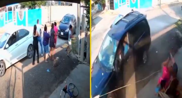 En la grabación se observan seis personas, entre ellas un menor, cuando están paradas, aparece un automóvil de color azul y los embiste. Cuatro mujeres fueron impactadas por el auto, dos de ellas "salieron volando" y las otras dos fueron golpeadas por un costado del auto.