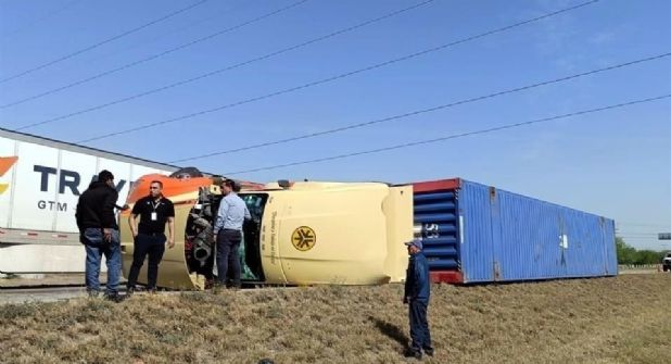 Un tráiler que transportaba un contenedor marítimo volcó la mañana de este martes en la autopista a Laredo, a la altura del kilómetro 30, dentro del Parque Industrial Las Américas, en Ciénega de Flores, Nuevo León.