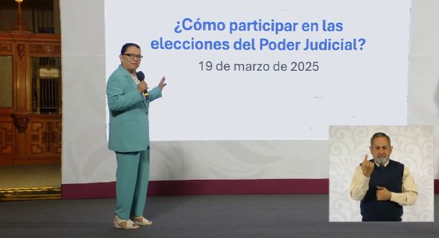 La funcionaria invitó a la gente para ingresar al portal del INE para consultar el micrositio “Conóceles” para revisar a los candidatos al Poder Judicial.
