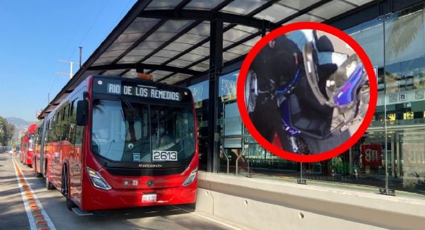 El conductor de la moto creyó que podría ganarle el paso a la pesada unidad, pero se impactó de frente. Todo sucedió tan rápido que el chofer del Metrobús no se pudo detener y terminó por pasarle por encima luego del impacto.