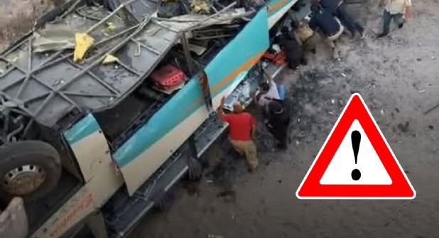 Al momento de la colisión, el autobús perdió el control y se vio proyectado hacia la barra de contención. El metal, que está diseñado para detener a los vehículos, no soportó y se venció; ahí fue cuando cayó hacia el precipicio.