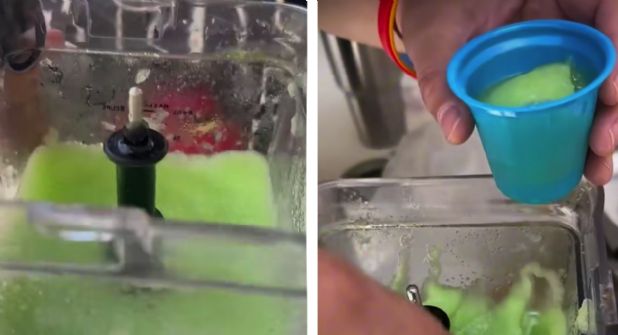 Este ingrediente es clave para que la nieve tenga esa suavidad especial y no se derrita de inmediato. Licúa todo a velocidad media hasta obtener una mezcla homogénea y granulada, como la de los carritos de la escuela.