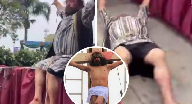 Durante una representación de la Pasión de Cristo, un actor que interpretaba a Barrabás terminó con la pierna rota al bajar del escenario donde se personificaba el juicio de Jesús de Nazaret.