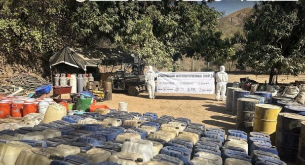 En el sitio localizaron, neutralizaron y destruyeron dos laboratorios clandestinos empleados para la elaboración de droga sintética, donde se aseguraron 150 kilos de metanfetamina, 11,850 litros y 360 kilos de sustancias químicas y material diverso. Este aseguramiento representa una afectación económica a la delincuencia organizada de 50 millones 250 mil pesos.